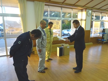 河北縦貫道の工事携わっている建設会社から、サッカーゴールとポータブルアンプを寄贈していただきました。大幸建設株式会社様、株式会社西島組様、株式会社中農組様からです。