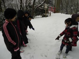 4年生 総合「MISIAの森」 投稿日時 : 2017/01/23 agatae 4年生が総合の時間に冬のMISIAの森へ行ってきました。MISIAの森には、雪がいっぱい積もっていました。寒い冬なので、生き物はいないかと思われましたが、動物の足跡を見つけることができ、子どもたちは冬でも色々な生き物がたくましく生きていることを実感し、寒い中でも楽しそうに足跡を探していました。