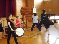 2年生は、「合奏と合唱」で、”山のポルカ”を元気に歌ったり、様々な打楽器を入れて″かぼちゃ”を演奏したりしました。