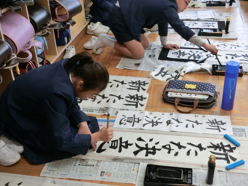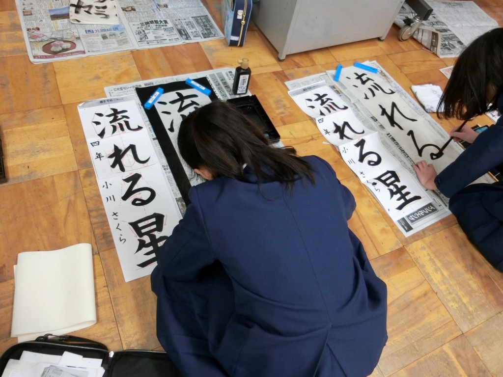 校内書き初め大会 投稿日時 : 2019/01/08 agatae 1月8日(火)3学期がスタートし、3時間目に書き初め大会がありました。子どもたちは、今まで授業や冬休みに練習してきた成果を出そうと一画一画を大切に集中して書いていました。