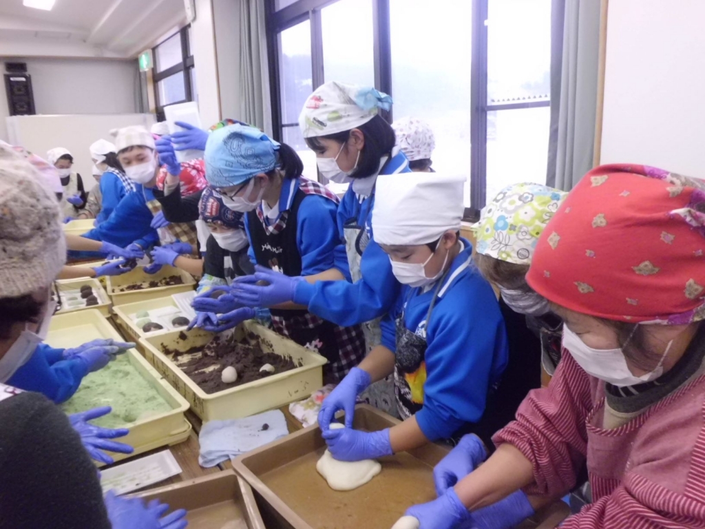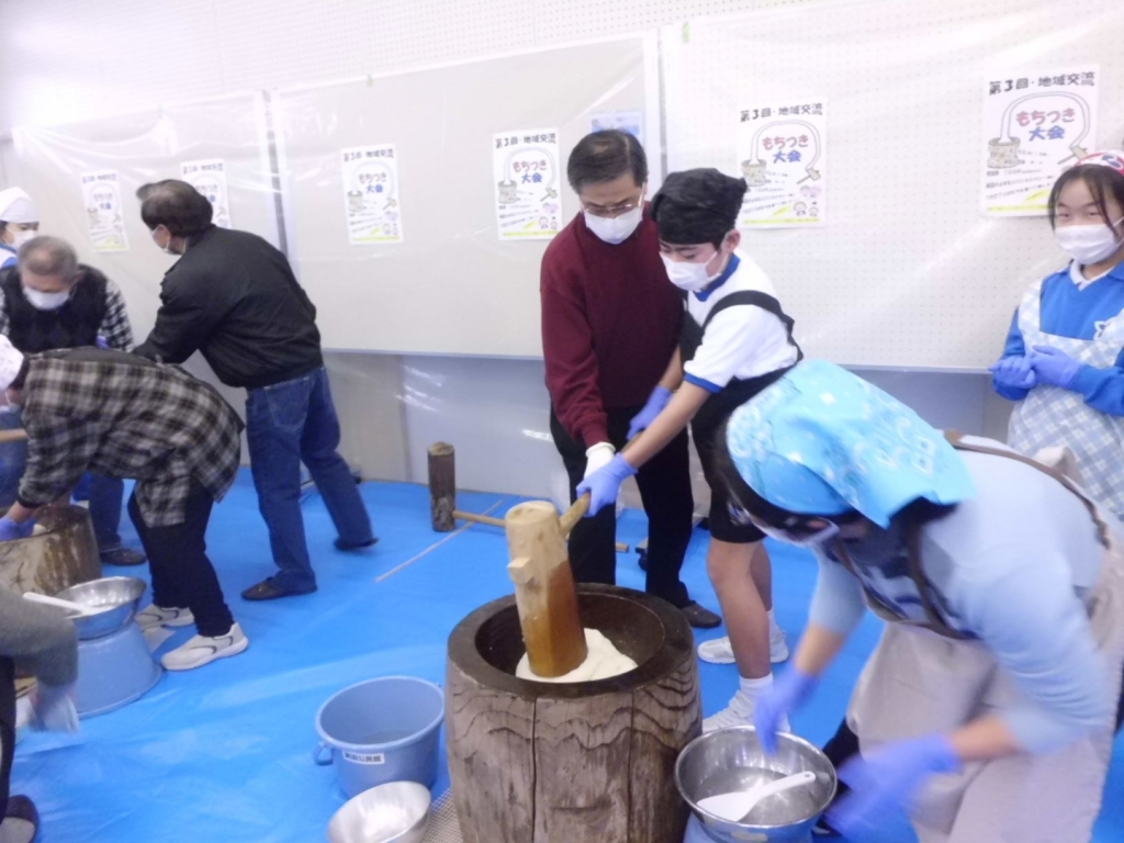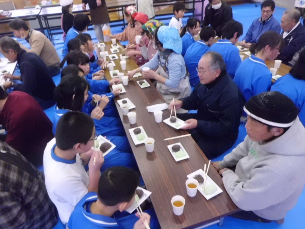 6年生 総合「もちつき大会」 投稿日時 : 2019/01/29 agatae 6年生が地域のおじいちゃんおばあちゃんと一緒にもちつきをしました。子どもたちは、もちのつき方をやさしく教えていただきながら力強くもちをついていました。自分たちでついたおもちをきなこやあんをつけて食べました。おじいちゃんおばあちゃんと楽しくお話をしながら食べ、和やかな時間を過ごすことができました。