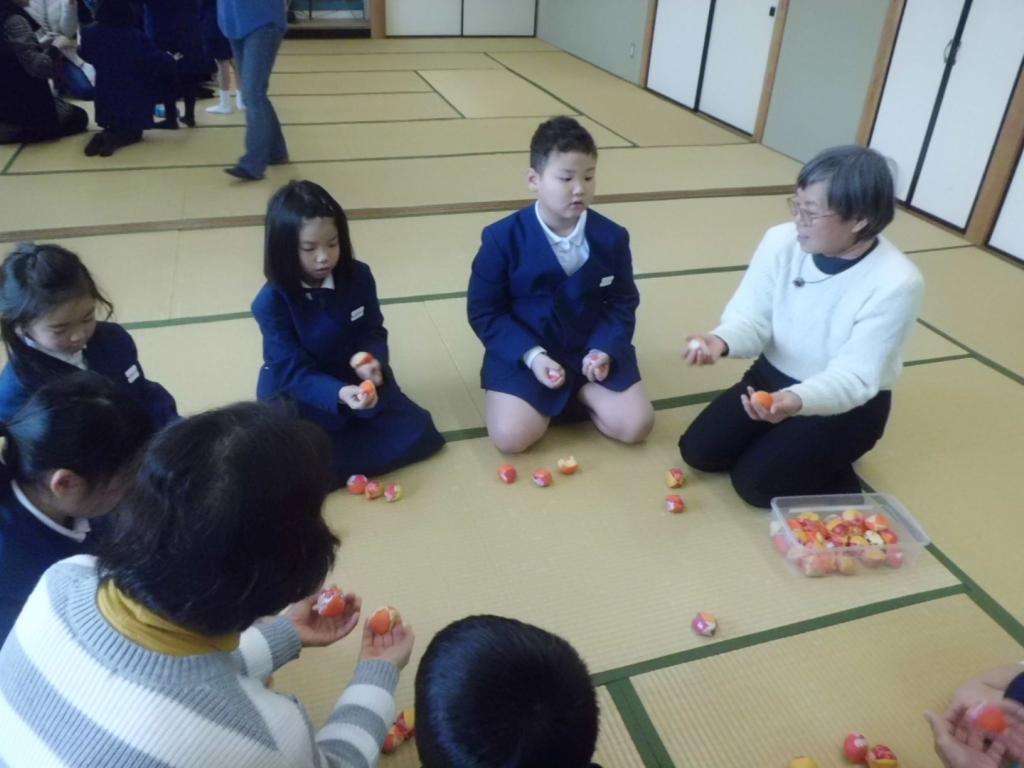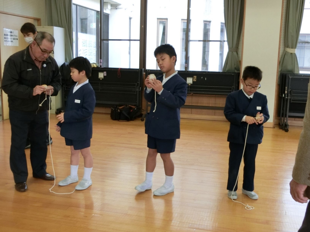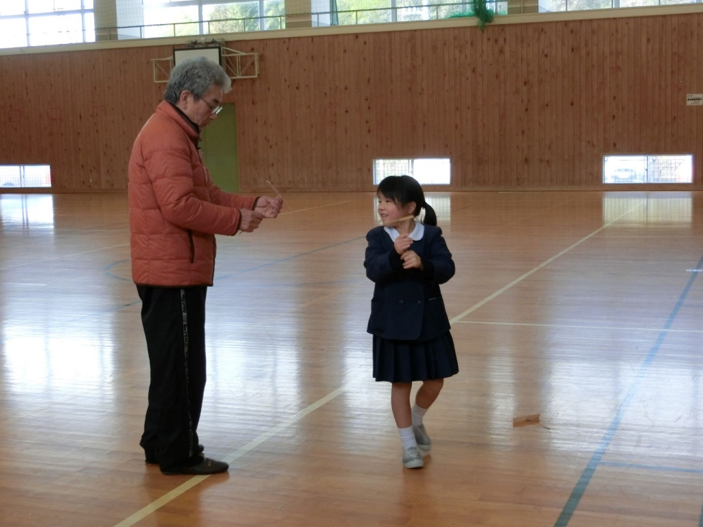 1年生 生活科「昔遊び」 投稿日時 : 2019/01/23 agatae 1月23日(水)の3,4限目に1年生が生活の時間に昔遊びをしました。子どもたちは、英田地区くらし安全ネットワークの方々にコツを優しく教えてもらいながら楽しく遊んでいました。「こま回し」「けん玉」「竹とんぼ」「あやとり」「お手玉」