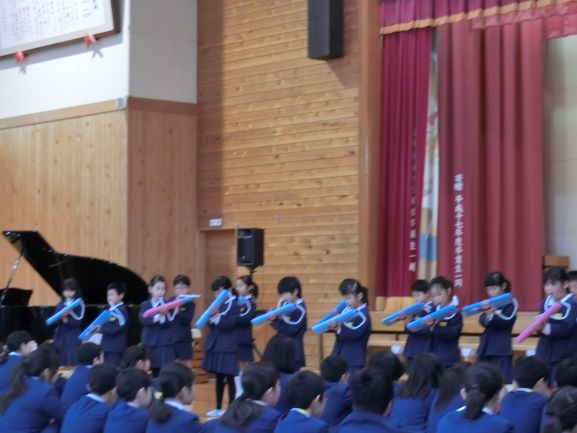 2年生 よびかけと演奏「楽しかったよ、2年生」