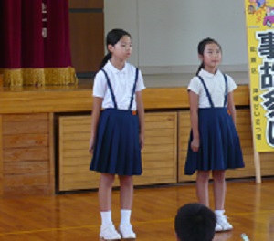 1学期の終業式は各学年から代表者が前に出て,自分たちができるようになったことを発表しました。