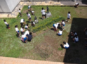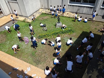 昼休みに,中庭の草むしりボランティアを募って作業をしました。