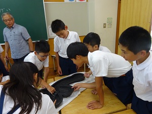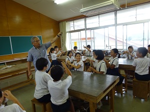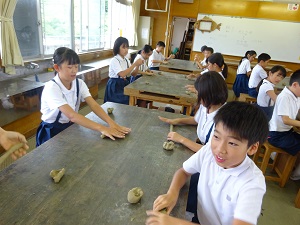 元金沢美術工芸大学学長の久世 建二先生に来校いただき,先生の作品を鑑賞しました。4・5年生は実際に焼成粘土に触れて,思い思いの作品を作り,一人一人が全く違う作品を作ることができる『創造性』について学びました。