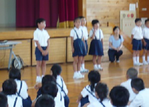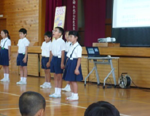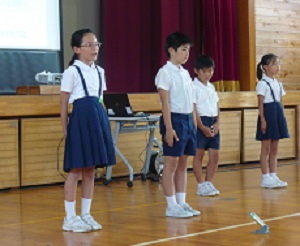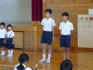 1学期の終業式は各学年から代表者が前に出て,自分たちができるようになったことを発表しました。