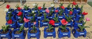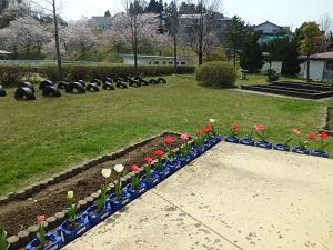 2年生が1年生のために植えてくれたチューリップが,たくさん咲いています。