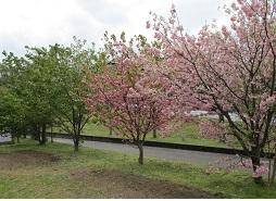 学校の畑のところには「ヤエザクラ」(八重桜)という花びらがたくさんついているサクラが