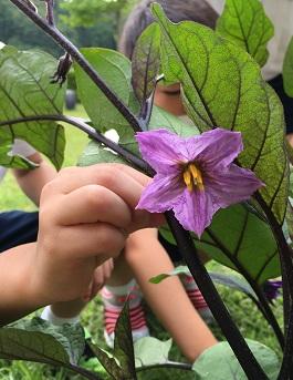 また、隣の2年生の畑には、こんなにきれいなナスの花も咲いていました。
