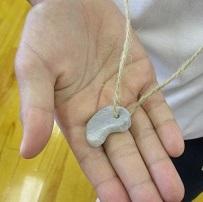 滑石という柔らかい石を、砂岩やチャートで削っていきました。