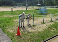 例年なら夏休みに入ってから業者さんにしていただいている遊具点検や消防施設点検も実施しました。