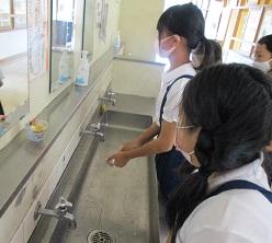 社会の学習では、「水はどこから」の学習をしていました。1回手洗いするのに、水はどれぐらい使うのか、グループで時間を測って調べていました。