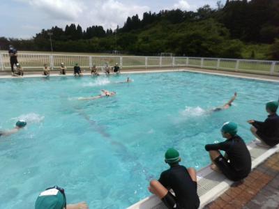 校長先生の安全祈願の後、プールに入りました。プールの周りを回って水流を作ったり、泳力を測ったりしました。
