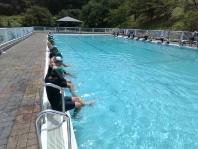 校長先生の安全祈願の後、プールに入りました。プールの周りを回って水流を作ったり、泳力を測ったりしました。