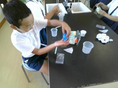 今日のクラブ活動で、サイエンスクラブのゲストティーチャーに、津幡町こども科学館館長の小林先生をお招きし楽しい実験を教えていただきました。
