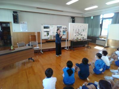 現在,6年生の国語では宮沢賢治の「やまなし」の学習をしています。それに合わせ,はまなす文庫の細川さんをお招きし,宮沢賢治の作品や生涯についてお話をしていただきました。