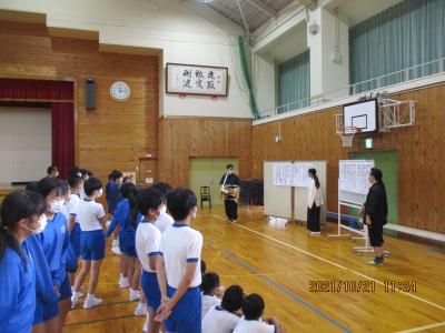 弁護士の角籐さん(英田小卒)をお迎えし,いじめ予防教室を行いました。