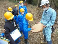 森林公園で自然散策をした後、実際の森林の間伐現場、製材工場の見学をしました。木が育ち、伐採され、製材になるまでの流れを1日で体験してきました。普段目にすることがない機械や立ち入ることができない現場を見せていただき、大変勉強になりました。