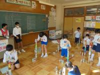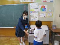 18日,能瀬保育園の年長さんが英田小学校を訪れ,1年生との交流会「あきでたのしむ会」を行いました。一緒に自分たちで作ったゲームをしたり,プレゼントをしたりと,1年生たちはすっかりお兄さんお姉さんとして,年長さんと交流することができました。年長さんも口々に「楽しかった」と言って帰っていきました。