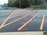校門から児童玄関にかけて、黄色のラインを引いてもらいました。登下校時における学校敷地内の児童の歩行をより安全にするためのものです。