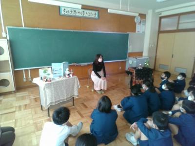 今日は読書ボランティアの「金のがちょう」さんをお迎えし、全学年に読み聞かせをしていただきました。