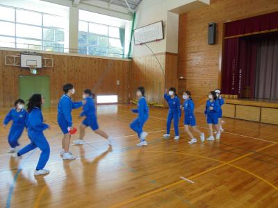 冬の間は室内でもできる運動、なわとびに取り組みます。毎年短なわ(いわゆるなわとび)を使って、みんなで縄跳びにチャレンジします(3学期)。また長なわを使った運動にもチャレンジしています。