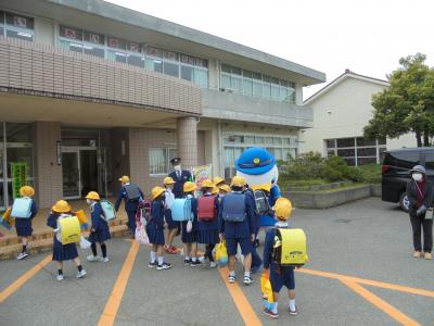 一列に並んで集団登校をする様子を見て、署員の方々にもほめていただきました。これからもみんなで交通ルールを守って安全に登下校してくださいね。