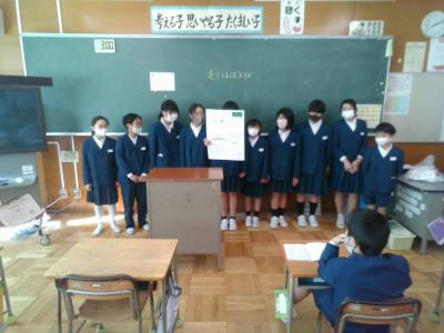 前回は6年生が作ったポスターを紹介しましたが、今日はそのポスターを使い、クラブの紹介をしました。