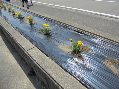 黄色系の花と赤色系の花とに分けて植えました。学校にお越しになった際は、ぜひ見ていってください。