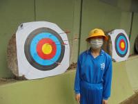 真ん中が10点,外に行く毎に9,8,7点となっており,5回矢を射てその合計点を出します。28点以上なら認定証がもらえるのですが,女子児童1名が28点をマークしました。