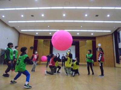 夜はキンボールをしました。大玉より大きいボールを使ったチームスポーツです。これも結構盛り上がりました。