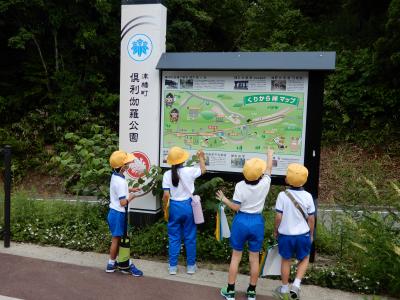 今日は津幡町内の自然や、施設、史跡などの見学に行きました。朝からの雨で心配でしたが、昼前には日が差してきました。お昼は森林公園でいただきました。