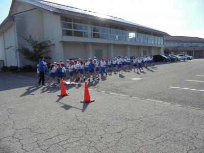 今日は各学年で、コースの確認をしました。グラウンドをスタートした後、校舎の前まで回り込み、体育館のところで折り返します。