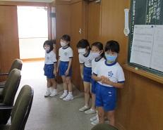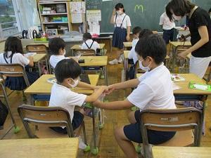 8月末から、保護者の皆さんが、朝の体温チェック、給食の配膳や放課後の消毒などに来てくださっています。