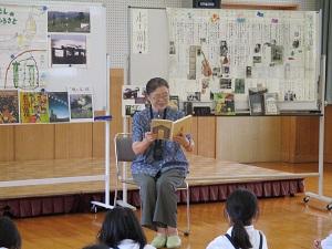 今日は、6年生の国語科「やまなし」「イーハトーブの夢」の学習で、宮沢賢治のえがく物語の世界を知るために、ゲストティーチャーとしてかほく市在住の細川律子先生をお招きしました。