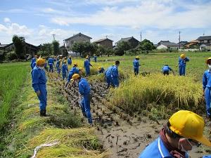 一日予定よりも雨で伸びましたが、5年生が今日、稲刈りを頑張りました。