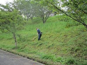 校務士さんと3人で草を刈っていただき、かなりの範囲をきれいにしてくださいました。本当にありがとうございました。