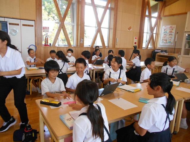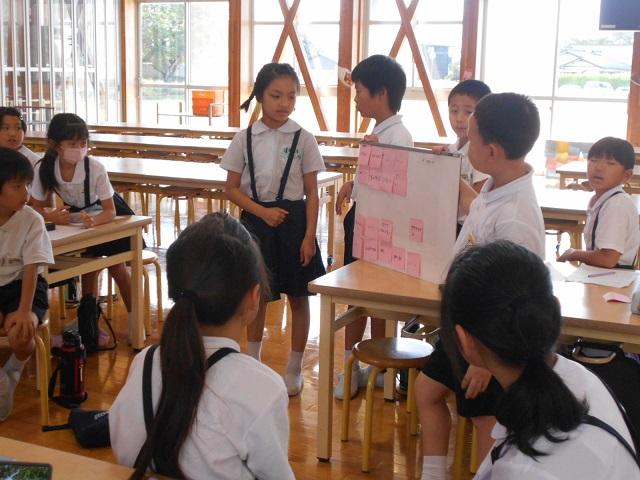 3年生は、「総合の学習の時間」に「町のよいところ」をテーマに調べ学習をしてきました。そして、町内5校の3年生がオンラインで、自分達が調べたことを発表する「合同発表会」を行いました。本校の3年生は、それぞれの地区の「ししまい」について分かりやすくプレゼンにまとめ、堂々と発表ができました。