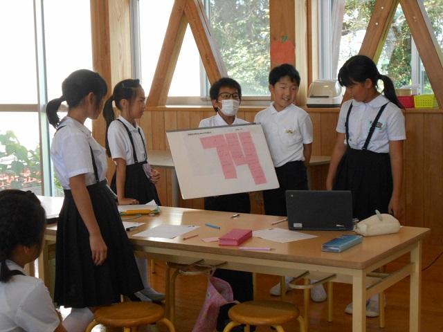 5年生のテーマは「数の秘密を見つけ、活用しよう」で、連続する10個の数のきまりについて考えました。「きまりを知り覚えることで終わるのではなく、きまりを使うことを大切に!」とメッセージを頂きました。