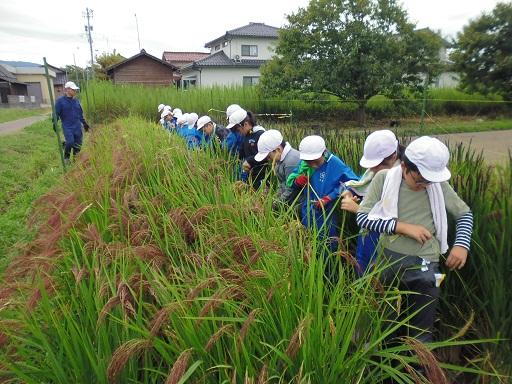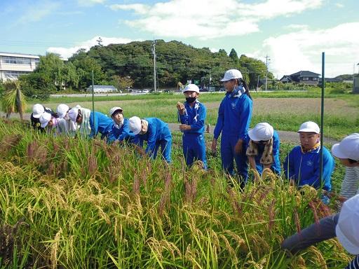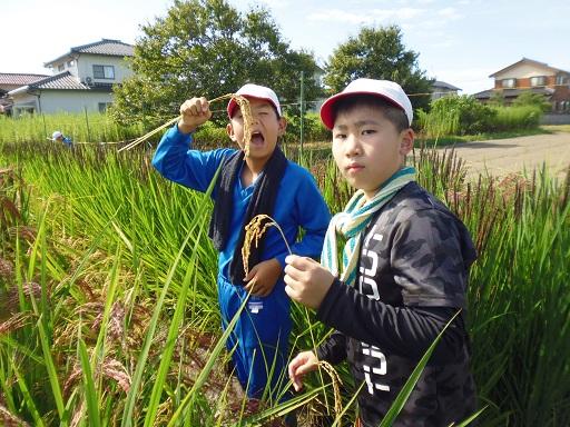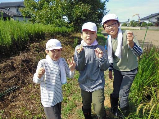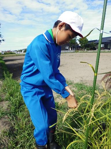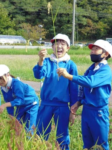 ・今日の稲刈りでとてもよかったところは、「チームワーク」です。いつも5年生はチームワークが良いけれども、今日は友達と一緒に協力して稲刈りをしたり仕事を終わらせたりする姿がとても見えました。チームワークが良かったのでいねかり作業もすぐに終わってしまいました。5年生のチームワークはとてもすごいものだなと思いました。