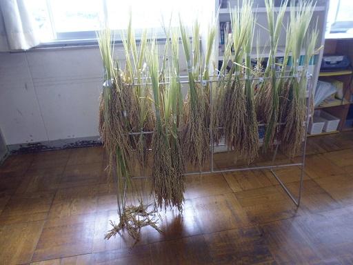 約1か月半、教室の風通しのよいところに干してあったコシヒカリの脱穀作業を、手作業でしました。