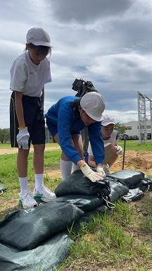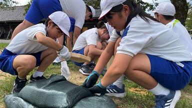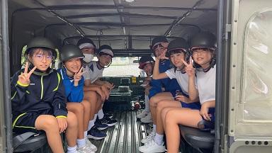 11月11日(月)に押水地区3校合同で陸上自衛隊金沢駐屯地へ行き、防災体験教室を行いました。自衛隊の方に説明を受けながら、天幕設営体験、土のうづくり体験、自衛隊の車への体験試乗など、多くの体験をさせていただきました。