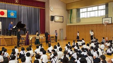 児童から、「知っている曲であっても、作曲した人の歴史などが分かって曲を聞くと、より楽しむことができた」などの感想がありました。心豊かな時間・宝の時間を、3校のみんな一緒に過ごすことができました。