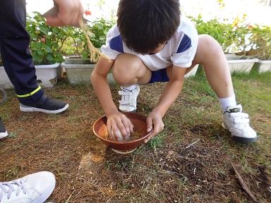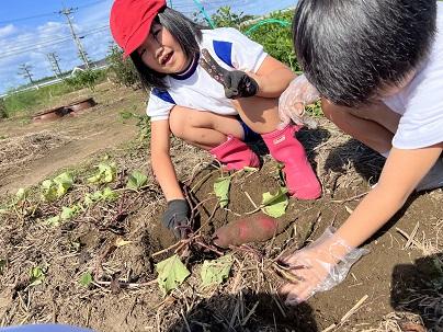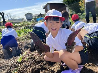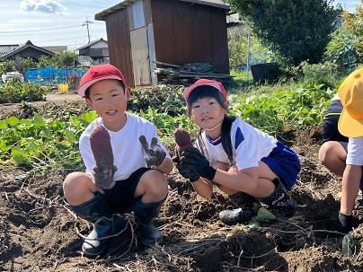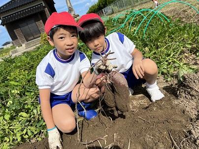 5月の苗植えに続き、学校ボランティアの山田さんが来てくださり、色々と教えてくださいました。2年生がリードして、まずはサツマイモの葉をとり、そして、いよいよサツマイモほりをしました。大きなサツマイモの「紅はるか」が次々と顔を出し、子ども達は大喜びでした。11月には、収穫を祝う会を予定しています。ご協力いただき、本当にありがとうございました。