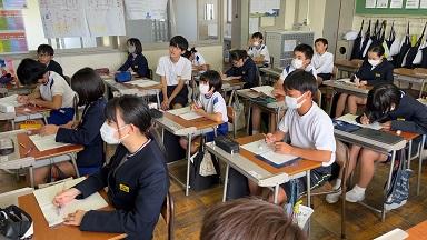 11月6日(水)に、3年生教室で「弁護士によるいじめ予防教育」を行いました。金沢の弁護士の方に来ていただき、ドラえもんの話や「心のコップ」の話などを交えながら、「いじめ」について真剣に考えるよい機会となりました。