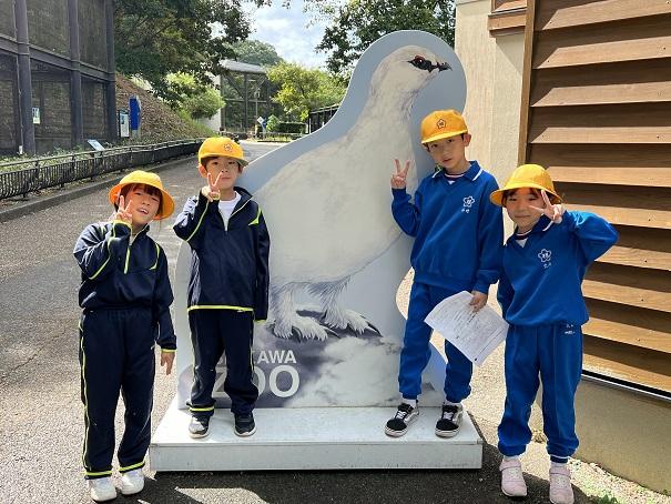 ライオンやキリン、しまうまなど、いろいろな動物を目の前にして大喜びの子ども達でした。1・2年生でグループになり、園内を回りました。1年生とはなれないように、ときどき後ろを見ながら歩く2年生の姿がありました。成長を感じました。たくさんの発見・喜びの連続の日となりました。