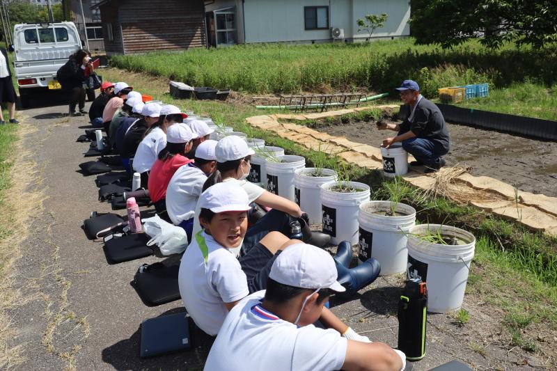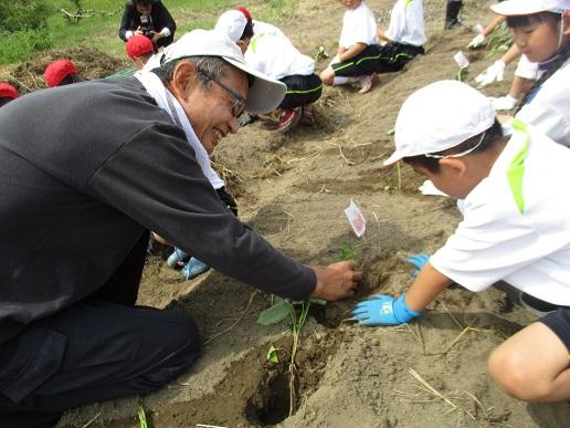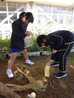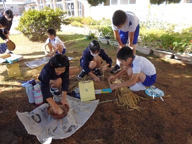 学校ボランティアの山田 礼二さんに教えていただき、お世話いただき、1・2年生は「サツマイモ」、5年生は「米」を無事に収穫することが出来ました。