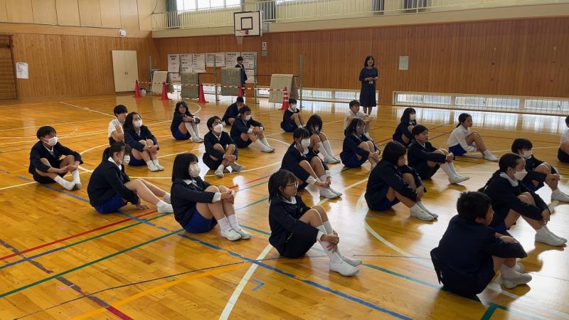 弁護士の出口さんが来てくださり、3年生を対象に、弁護士の仕事や人権・権利、そして「いじめ」について、具体例を示しながら、分かりやすくお話をしてくださいました。