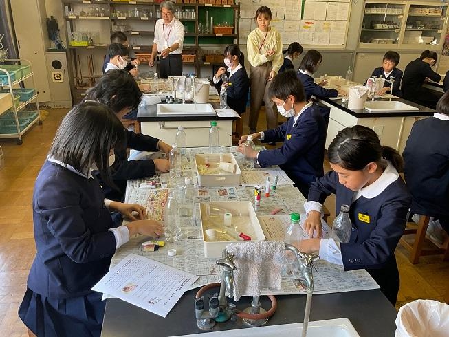集中して取り組む子ども達の姿や、何回も繰り返してやって確かめる姿がありました。一人一人が水に対する考え、知識が変わり、科学の不思議さ・面白さを感じる時間となりました。